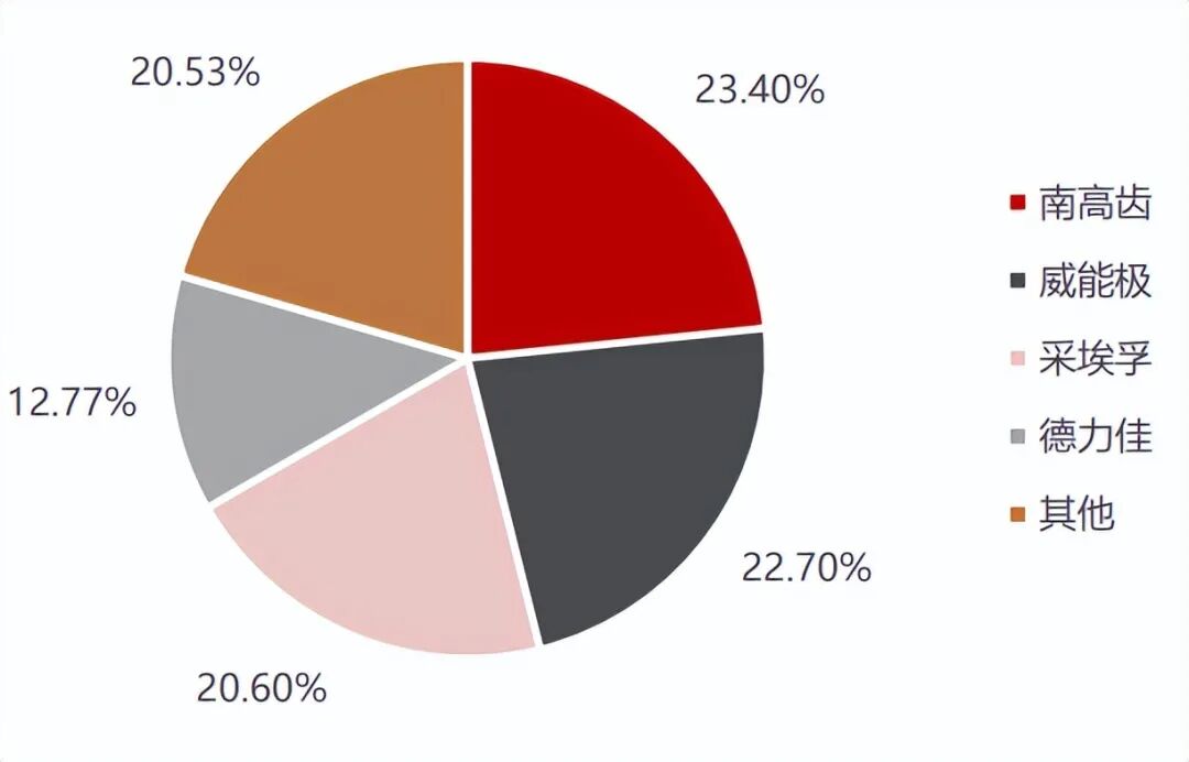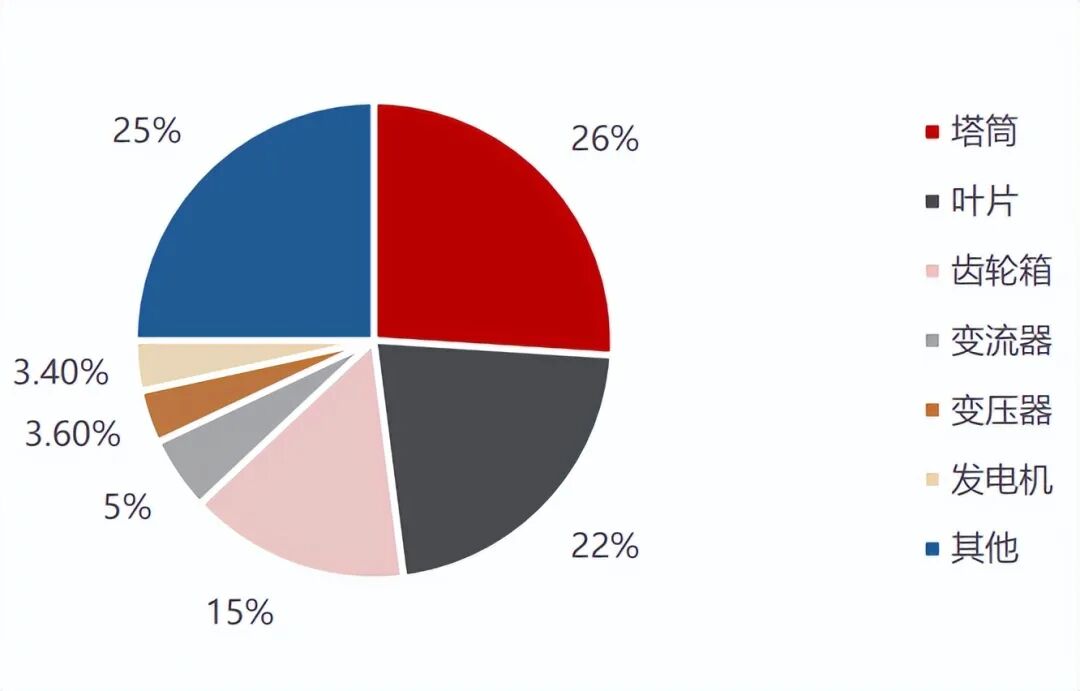 齒輪箱是雙饋式與半直驅(qū)式風(fēng)機關(guān)鍵部件,成本占比約 15%。齒輪箱位于風(fēng)力渦輪機的底部,連接著風(fēng)輪(葉片)和發(fā)電機,是風(fēng)力發(fā)電機組中技術(shù)含量較高的部件之一,在風(fēng)電機組總成本中占比約15%,僅次于塔筒和葉片。齒輪箱核心作用是將風(fēng)輪葉片的旋轉(zhuǎn)動力轉(zhuǎn)化為高速旋轉(zhuǎn)和適當?shù)呐ぞ?,以?qū)動發(fā)電機產(chǎn)生電能。齒輪箱通常由多個齒輪組成,通過精準的傳動比例來提高風(fēng)輪轉(zhuǎn)速,并將其轉(zhuǎn)化為適合發(fā)電機工作的轉(zhuǎn)速。通常風(fēng)輪的轉(zhuǎn)速很低,遠達不到發(fā)電機發(fā)電所要求的轉(zhuǎn)速,必須通過齒輪箱齒輪副的增速作用來實現(xiàn)。